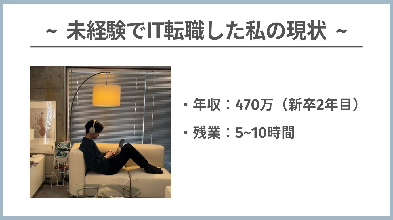未経験IT転職なら【ユニゾンキャリア】という転職サイトで無料相談してみて欲しいです◎